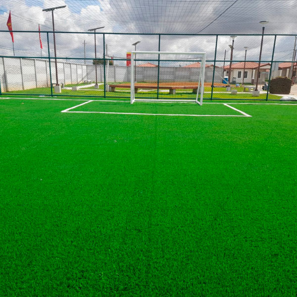 El césped de 45 mm de altura de pila, tiene forma de Diamante, más duradero y de forma firme que el mismo hilo Dtex. De aspecto liso excepcional, producto patentado y de forma única. Gran calidad precio para competir en el mercado. El diseño especial de la forma de la columna vertebral aumenta la resistencia de rebote del césped, El diseño especial de la forma de la columna vertebral hace que la hierba se mantenga más recta.
